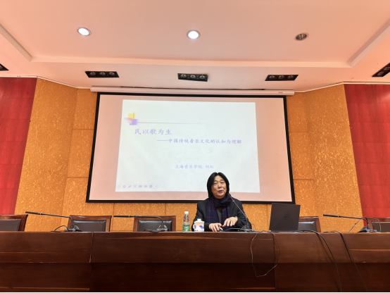 刘红教授在讲座中从民歌的分类、民歌的特征、民歌因素的构成三个方面阐述了传统音乐的特点,分享了自己对传统文化和民族音乐的认识。