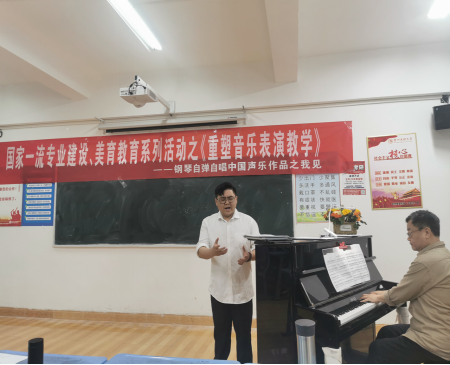 2023年4月19日晚上19:00,在beats365官方网站9栋306教室,由键盘系组织举办了“国家一流专业建设、美育教育系统活动之《重塑音乐表演教学——钢琴自弹自唱中国声乐作品之我见》—薛小明教授公开课”。现场坐无缺席,反响热烈。