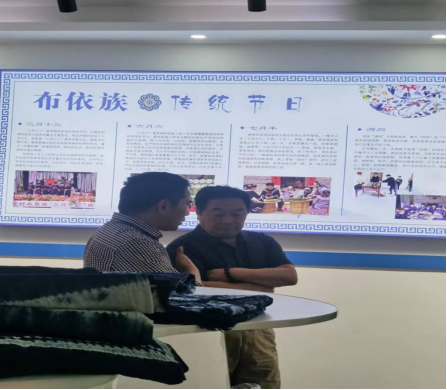 唐德松经理与贵州商公司罗正雄副教授参观轧染工坊点非遗文创产品