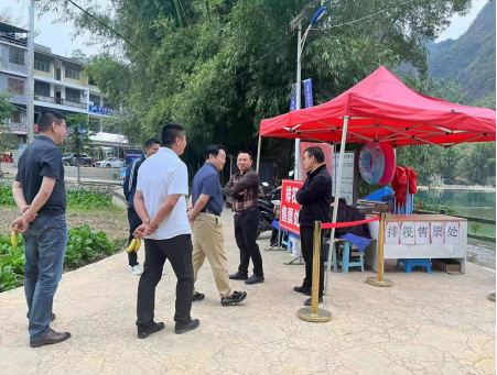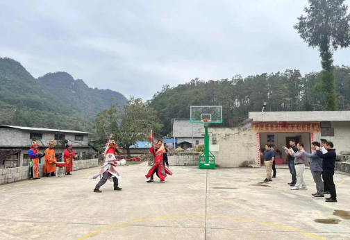 10月26日,专家组乘车前往罗甸县沫阳镇白龙村,对国家级非物质文化遗产董架阳戏、沫阳镇沫阳村轧染工坊、沫阳镇大井村大小井民宿、竹筏运营、业态布局及配套设施等进行调研。