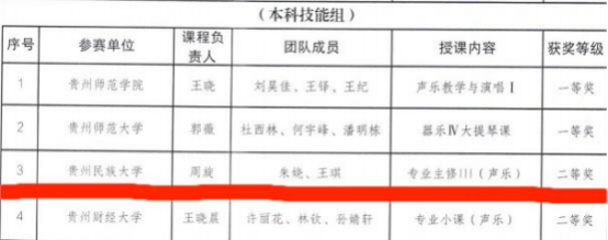 根据《省教育厅关于举办 2023 年全省第二届艺术教育音乐美术教师精品课展示活动的通知》要求,省教育厅已于10月31日-11月2日在贵州师范大学举办了展示活动。全省共有本专科院校83支教师队伍参展,其中音乐52支,美术31支。按程序,省教育厅分别组织相关专家进行了评审。公司教师周旋团队在此次活动中荣获本科技能组二等奖。