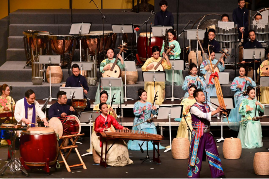 别具特色的策划、风格多元的形式、多民族文化的交融结合,让此次音乐会大放异彩。《国乐咏中华》音乐会分为“大春秋”、“醉山水”、“纳百川”、“天行健”、“归初心”五个篇章,其整体结构接近于交响诗画,然又似“乐舞一体”的相连组曲,形式创新富有特色,此次音乐会特委约当今优秀青年作曲家王云飞创作,国际华人指挥大师汤沐海、乐团驻团指挥姚申申执棒。