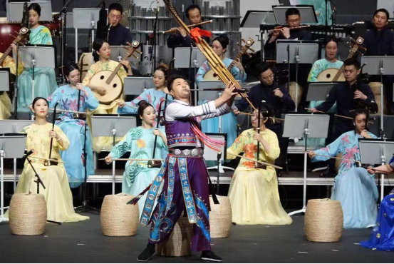杨昌杰老师作为苗族代表与藏族、维吾尔族、哈萨克族、蒙古族、彝族和朝鲜族等十多个民族乐器的演奏家首次同台亮相。音乐奏响,现场气氛热烈,观众随着节拍共同击掌,乐团成员高深的技艺及相互间的默契配合,共同演绎了隽永、庄严的颂歌,再现中华五千年文明之光耀!