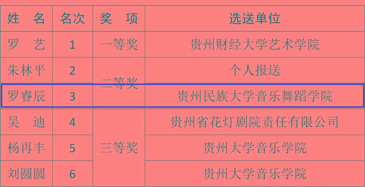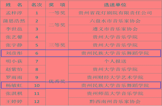 贵州选拔赛(民族弹拨乐)获奖名单