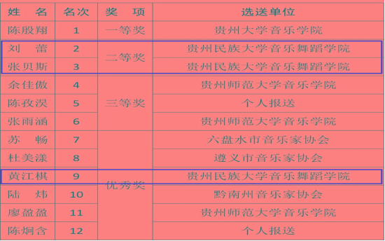 贵州选拔赛(钢琴)获奖名单