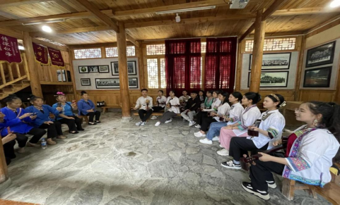 结束在三龙侗寨的交流会后,巡演团一行人马不停蹄地前往肇兴侗寨,开启下一行程。在下午4点钟,公司师生抵达肇兴侗寨,大家稍作休整,为稍后的座谈会做准备。