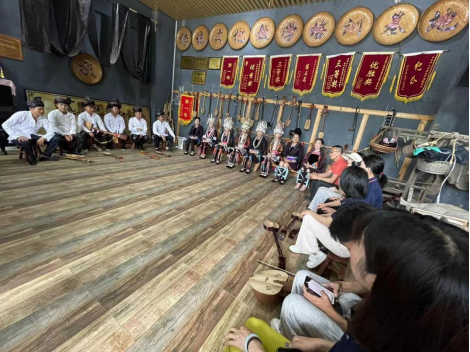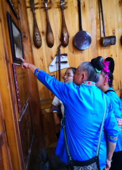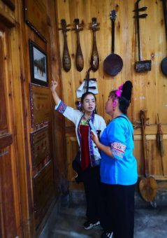 抵达三龙村后,村民们热情的迎接巡演团,并用侗族最美味、独特的菜肴,招待远方到来的巡演团成员。饭后,三龙村的村委和歌师们邀请巡演团到侗族文化传承室进行音乐交流。