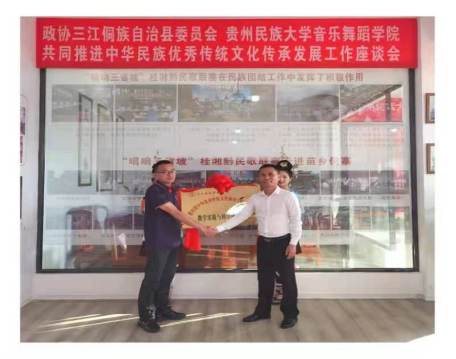 潘博副经理与黎平县文体广电旅游局局长唐大才进行挂牌仪式