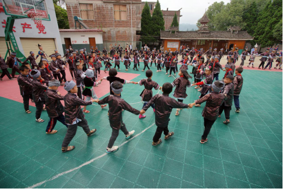 beats365官方网站教育部中华优秀文化侗族大歌传承基地师生参观从江县高增乡小黄小学并与从江县高增乡小黄小学同学进行课间操《多耶》互动